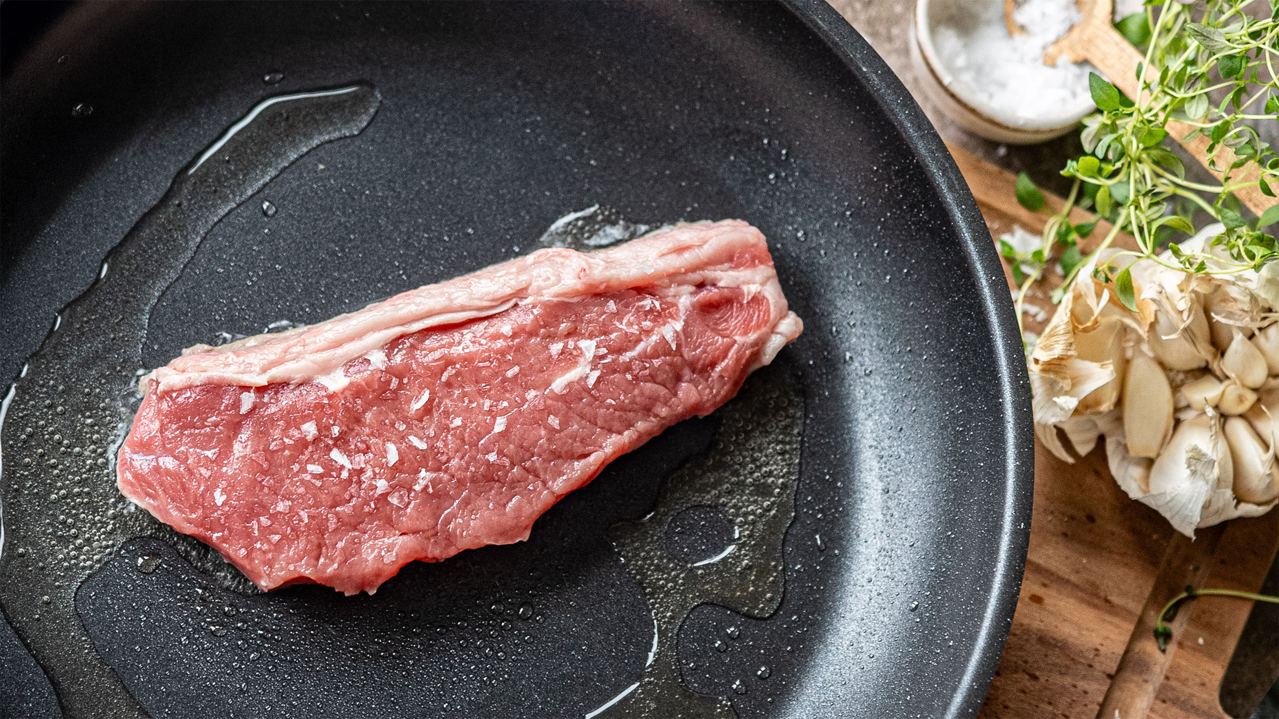 Stek kjøttet i 2–3 minutter på hver side for medium.
