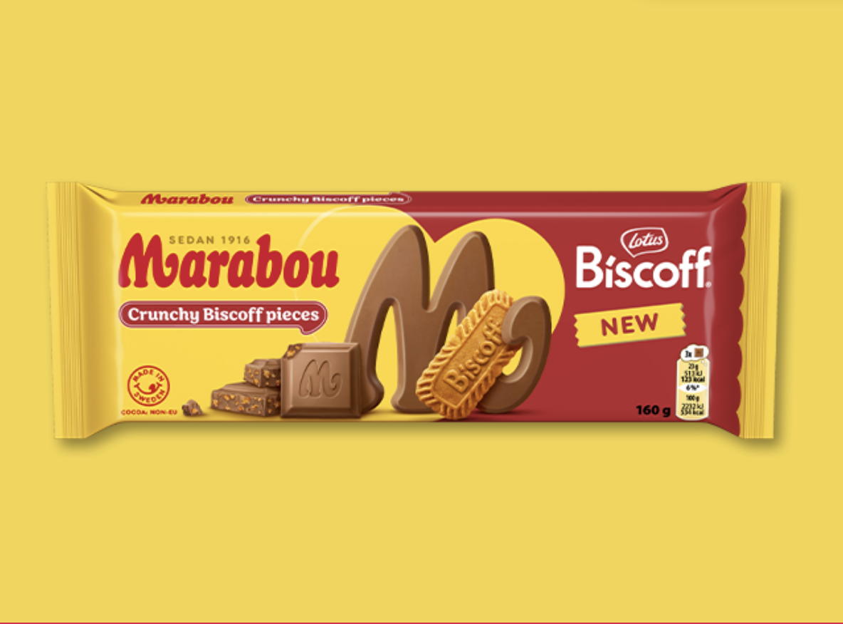 Deilig Marabou melkesjokolade møter den karamelliserte smaken av Lotus Biscoff - en smakskombinasjon med perfekt crunch som gjør hver eneste sjokoladebit ekstra spennende.