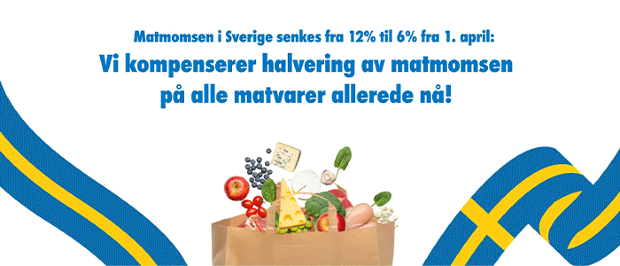 Kompenserer for momskuttet i Sverige allerede fra 25. mars!